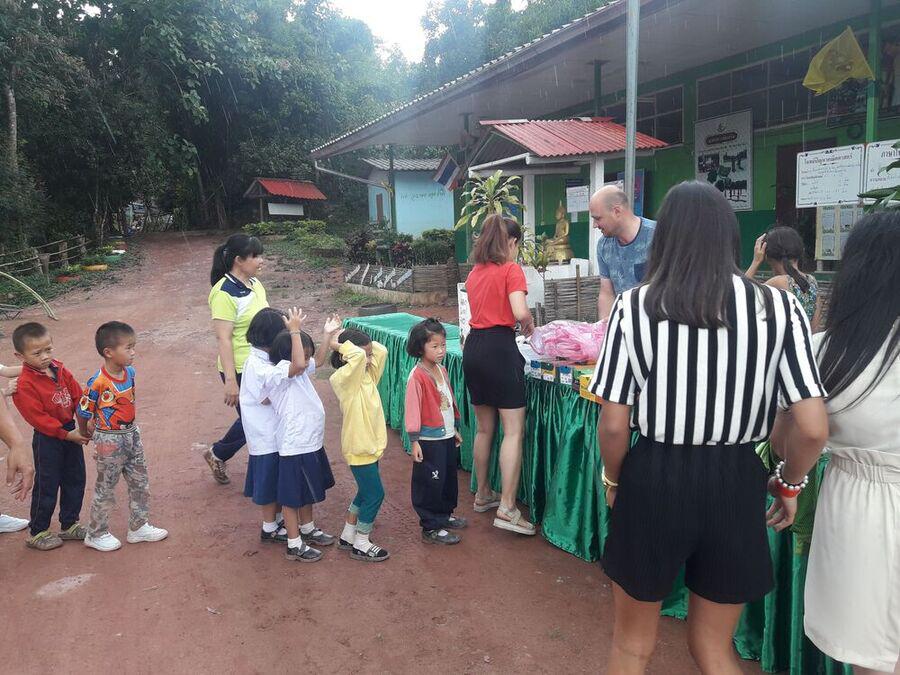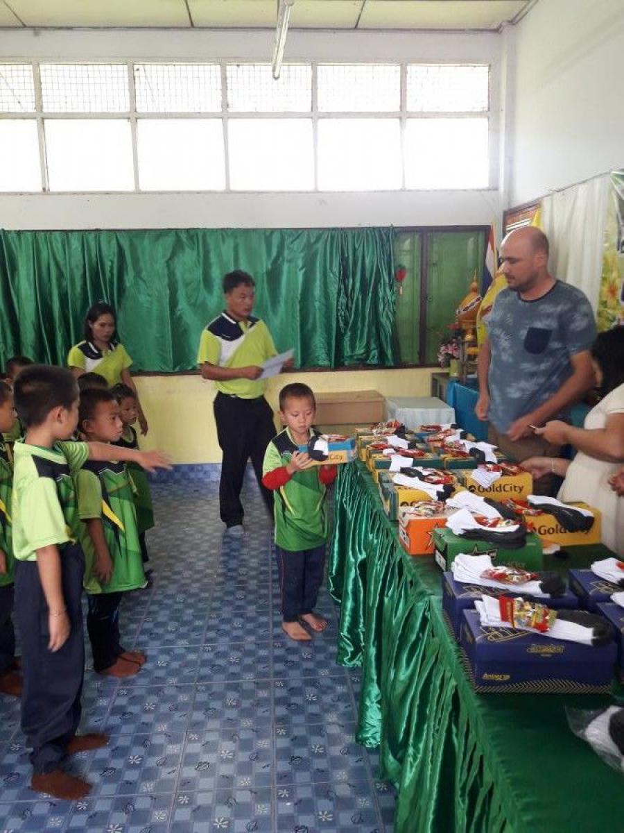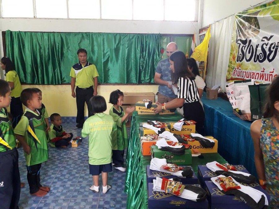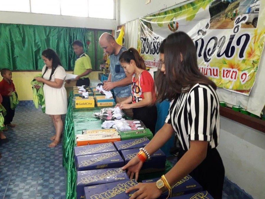 มีคณะผู้ใจบุญจากประเทศเบลเยี่ยมบริจาคเสื้อกีฬาและรองเท้าให้นักเรียน 2 สิงหาคม 2561 S:0